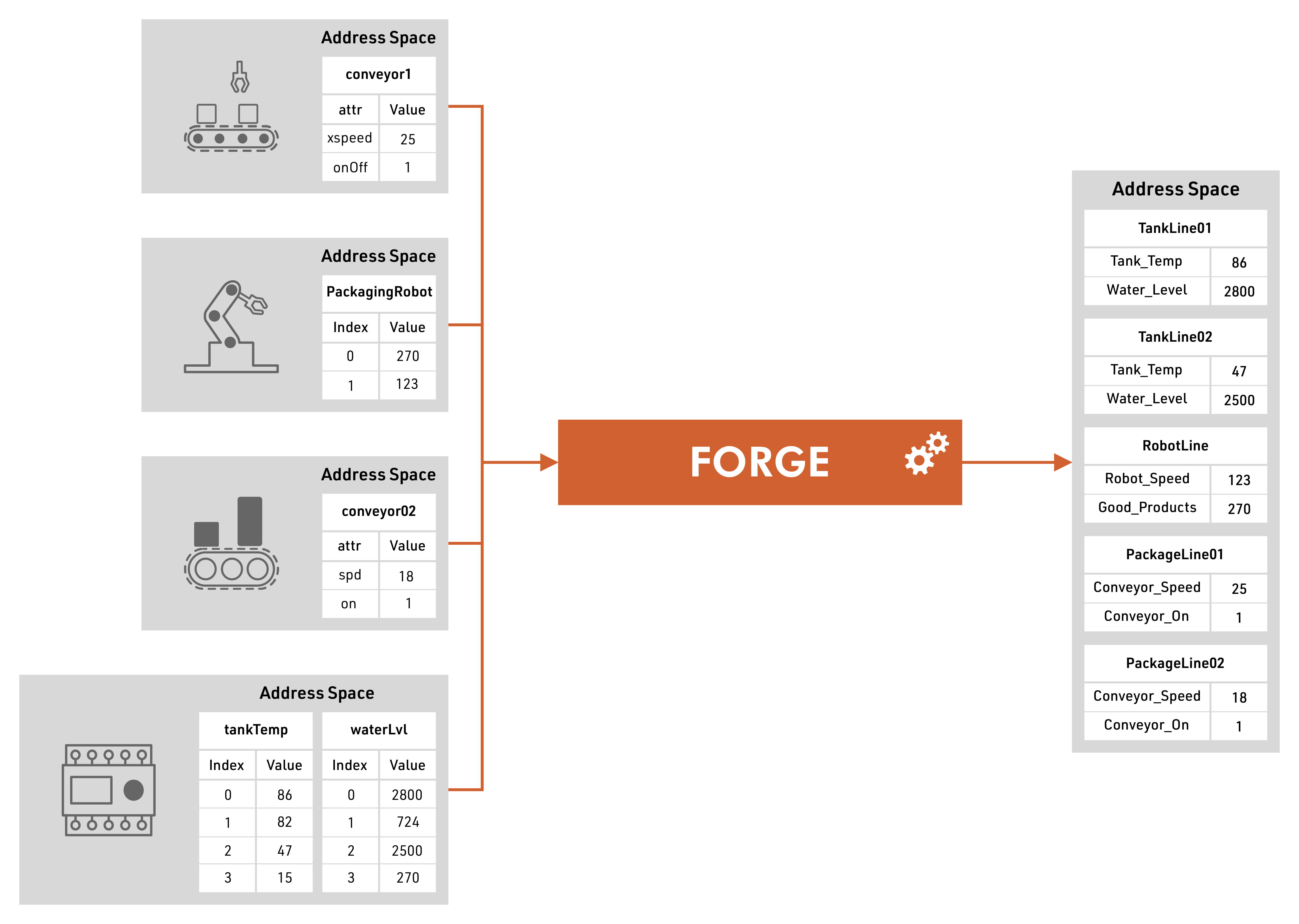 一旦配置,统一的地址空间将根据命名和结构原则从所有连接的数据源中公开底层数据。这一结果简化了IT系统的OT数据采集,以最合适和标准的方式提供信息。