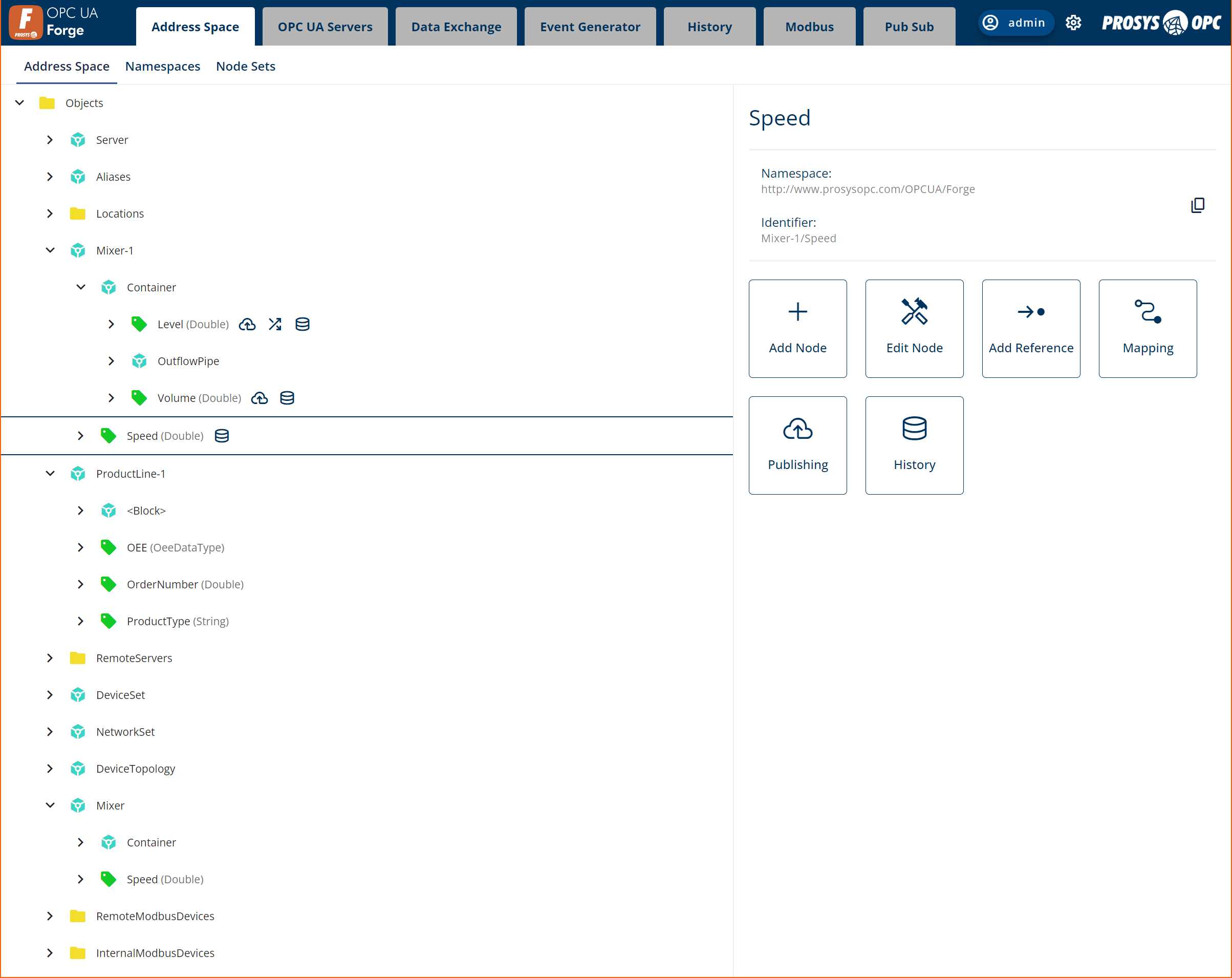 浏览所有连接的OPC UA服务器的底层地址空间,并选择要协调和发布的数据。易于使用的操作,如重命名、缩放和偏移,可帮助您实现目标。建模工具能将底层数据映射、组织到基于行业标准的信息模型中。