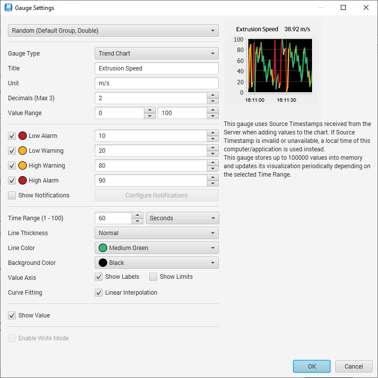 使用一系列精美的仪表、视觉元素和图表来构建您的自定义监控屏幕。每个仪表 都有精心选择的参数,允许您以最快的方式创建基本的用户界面。通过设置采样 间隔,您可以控制数据通信量以及数据更新显示的反应速度。